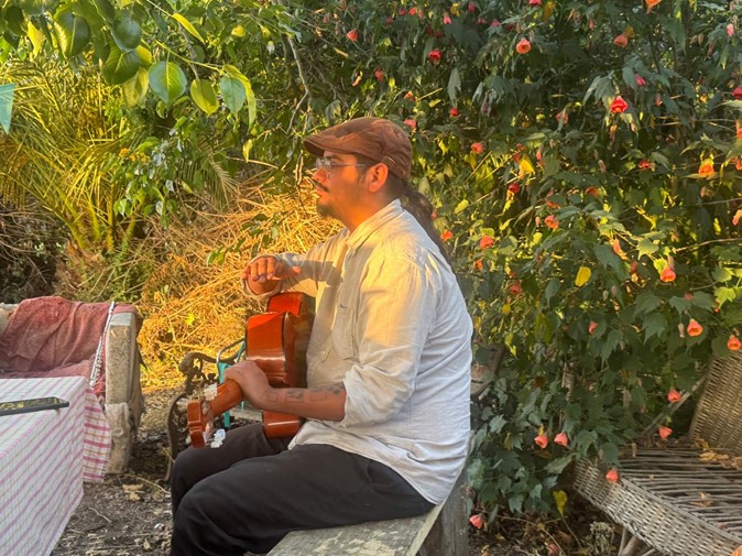 Si bien practico flauta traversa me apasiona la cueca y la chamullo, he aprendido y practico guitarra traspuesta (españolita, tercera alta, por arpa) con algunos toquios simples y varias entonaciones.