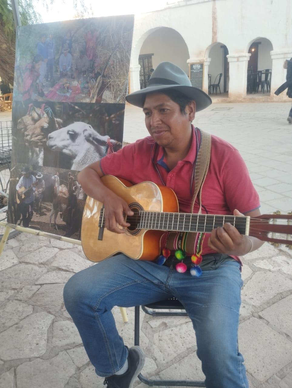 El canto tradicional y la música ocupan un lugar central en su vida patrimonial. Acompañado de su guitarra se ha integrado activamente a las fiestas tradicionales, aprendiendo de los antiguos cantores del Alto Loa y recopilando melodías en una libreta personal, labor que realiza de forma meticulosa y dedicada.