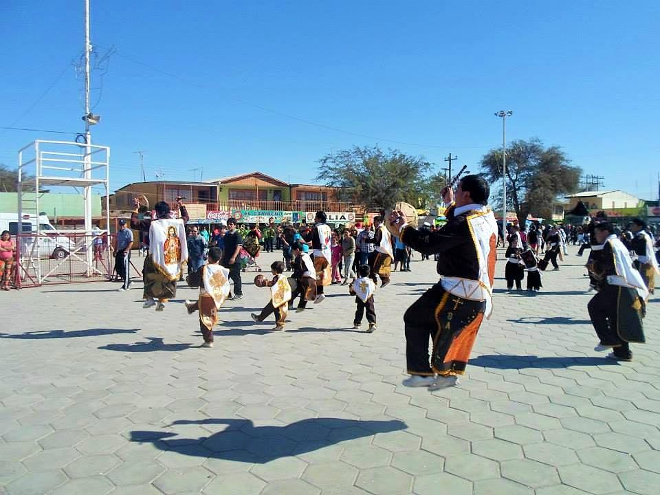 Después que regresamos de la La Tirana, celebramos La Tirana Chica, el 15, 16 y 17 de agosto de cada año. Viene la asociación de bailes de Pedro de Valdivia, que trae 12 bailes, entre morenos, gitanos, indios, diabladas, pero ninguno es chino. También vienes otros bailes de Antofagasta, bailes invitados o apadrinados. Esta es la fiesta más importante de esta zona, porque hasta aquí llegan cerca de 30 bailes. El año pasado, por ejemplo, vino de invitado y por primera vez el baile chinito de La Tirana.