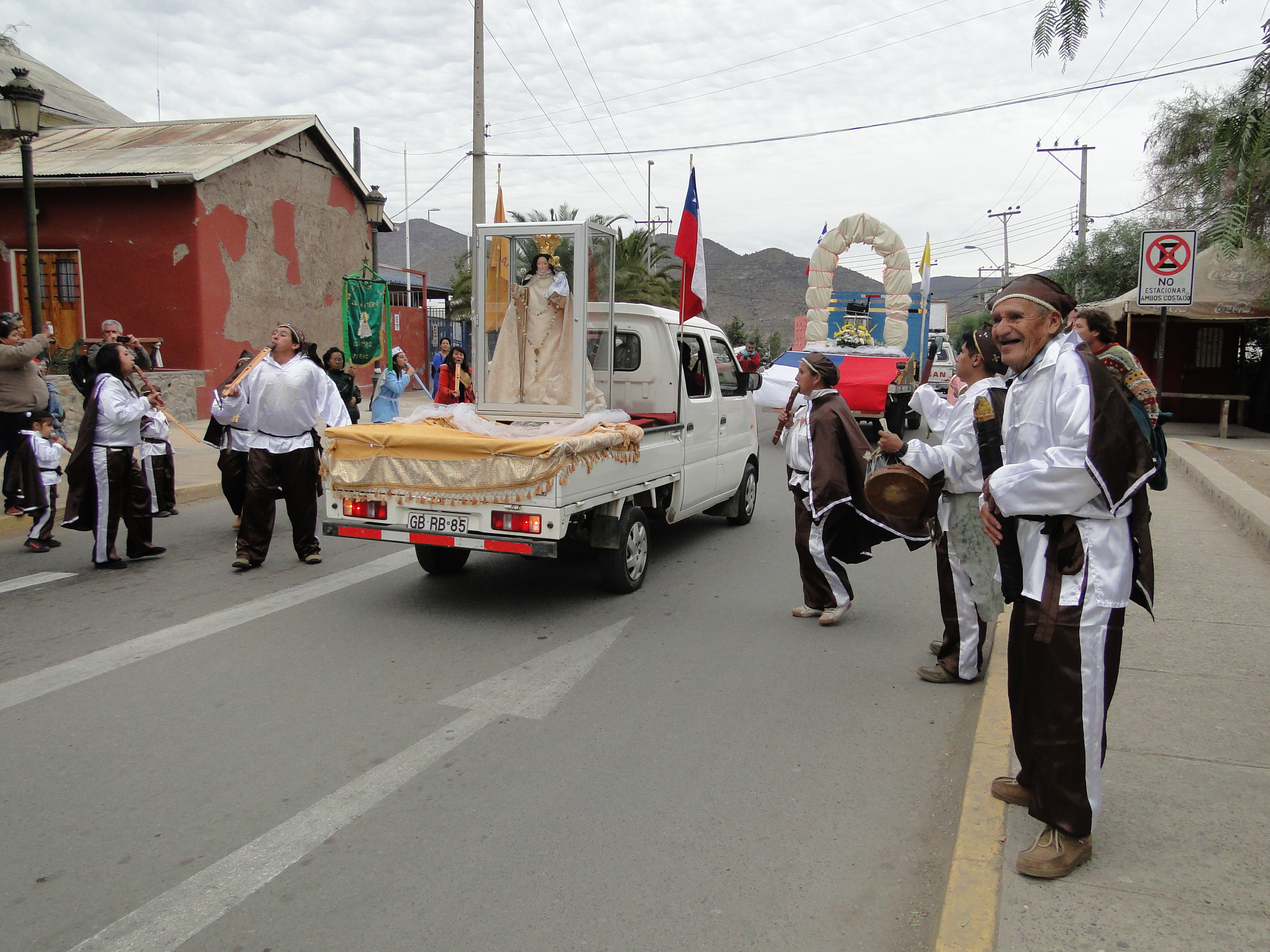 “El baile de nosotros se llama Madre del Carmelo. Es fundado el 13 de junio de 1908 y ahí nosotros nos pre- sentamos como chinos, nos presentamos a la Madre por promesas, por devoción. Yo, cuando a mí me presentaron, me presentaron para toda la vida de servirle a Ella. Por eso que todavía sigo sirviéndole, porque ahora poco dejé de ser chino... Y para hacer las fiestas, eran muy lindas las fiestas también, claro que no habían muchos bailes, el puro baile de Monte Patria, de pura flauta. Pero era muy grande, llegamos a tener como cincuenta bailarines, buen número. Nos recibía aquí un caballero que era el cacique, don Rosario Bugueño... Él fue el primer fundador, que vivía como en el centro de Monte Patria, en calle Balmaceda. Él nos recibía en la casa de él. Él era cacique. Antes eran caciques, ahora son caporales. Los únicos que son caciques ahora son los que están en La Serena, en Andacollo, esos son caciques, todos los otros valles tienen un caporal del baile...”