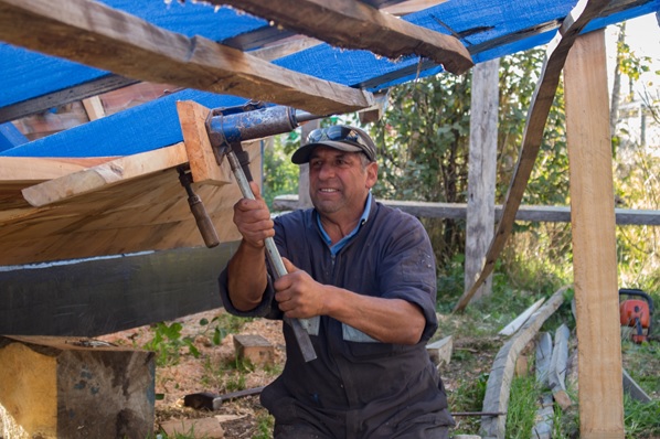 Para construir una embarcación, encarga la madera estructural en campos cercanos, pero como eso aveces demora mucho, él mismo va al campo a elegir y a cortar los palos necesarios para las piezas con curva. Según el gusto del dueño, hace embarcaciones con cuadernas naturales o dobladas a vapor. Sin embrago, cuando la pega es apurada, y no hay tiempo para buscar las piezas naturales, éstas se pueden ir armando mediante ensamblajes.