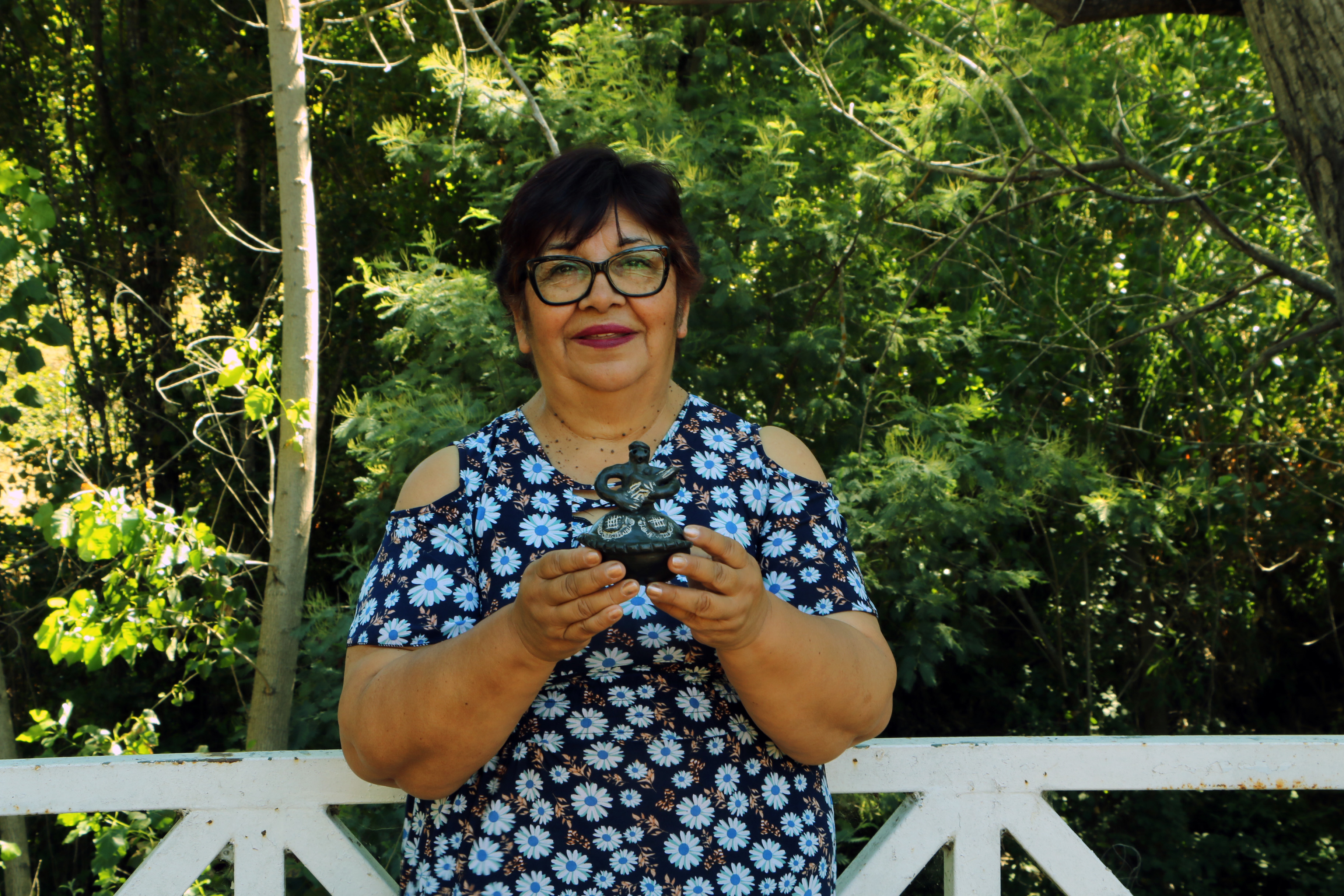 Aprendió aproximadamente a los 15 años de su madre Olga Belmar Velásquez, quien le enseñó todos los pasos de la práctica. Inició con miniaturas o adornos pequeños, los que aún realiza. Durante 30 años vivió en Santiago, si bien al principio hacía piezas y se las entregaba a su madre, por 20 años dejó la práctica, sin embargo, desde 2020 volvió a Quinchamalí y retomó la alfarería. En la actualidad comercializa sus piezas en el Centro de Eventos La Guitarrera.