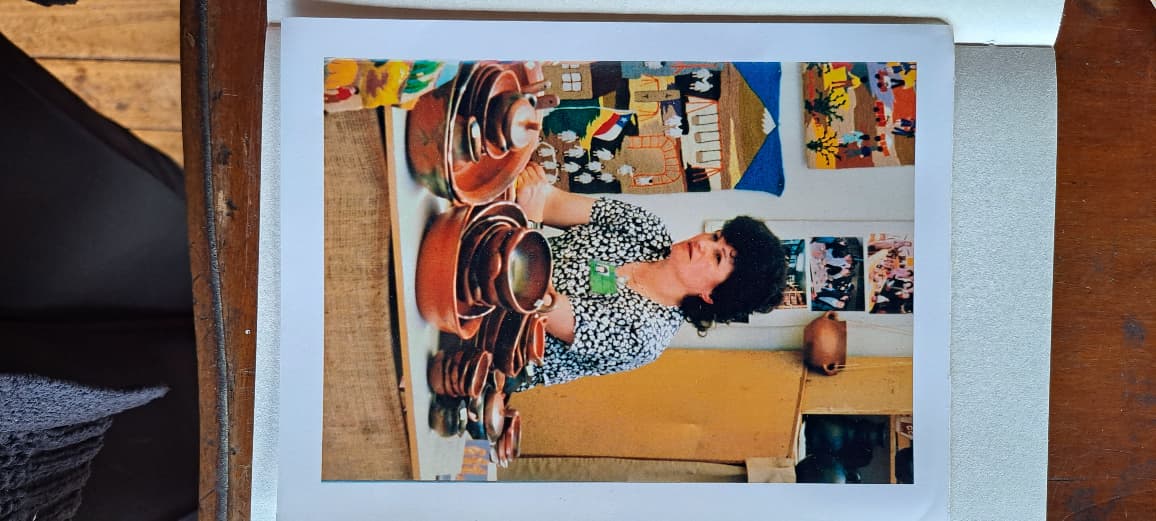 Ruth Jara llegó al bordado tras enviudar y dejar su oficio previo como alfarera en la Quebrada de Ulloa. Se integró a la agrupación de bordadoras durante un encuentro en el Jardín Infantil Manderscheid, donde encontró un espacio de contención comunitaria y un oficio que le permitió reconstruir su vida.
