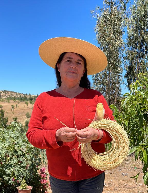 Su práctica es el trenzado de 4 y 7 pajas, realizando blanqueado y teñido de la paja. Los recursos materiales utilizados son el Trigo Colorado (compra).