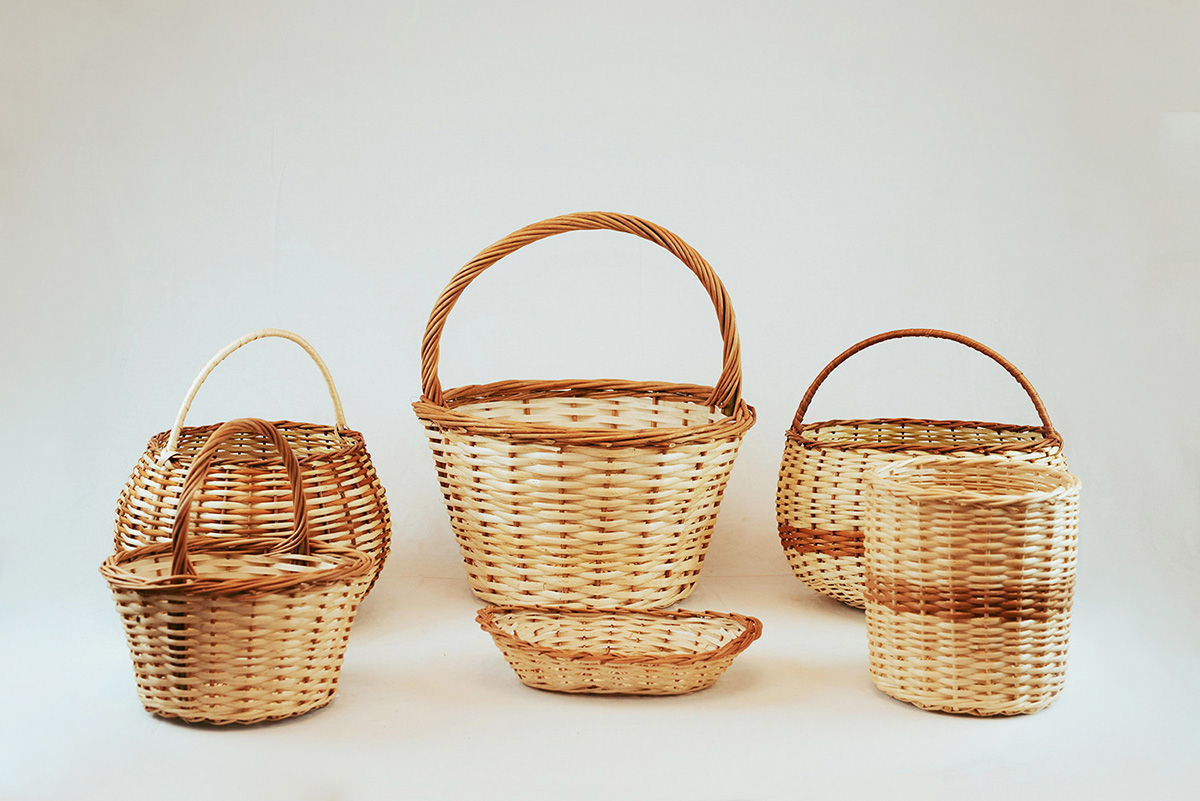 Elabora diversos canastos de base redonda u ovalada, destacando entre los utilitarios las diversas cuartillas, canastos botes, paneras grandes o de mesa, bolsos, ollas, leñeras, roperos, baúles y sillones. Dentro de la cestería ornamental que realiza destacan las carretillas, bicicletas, maceteros y espejos.