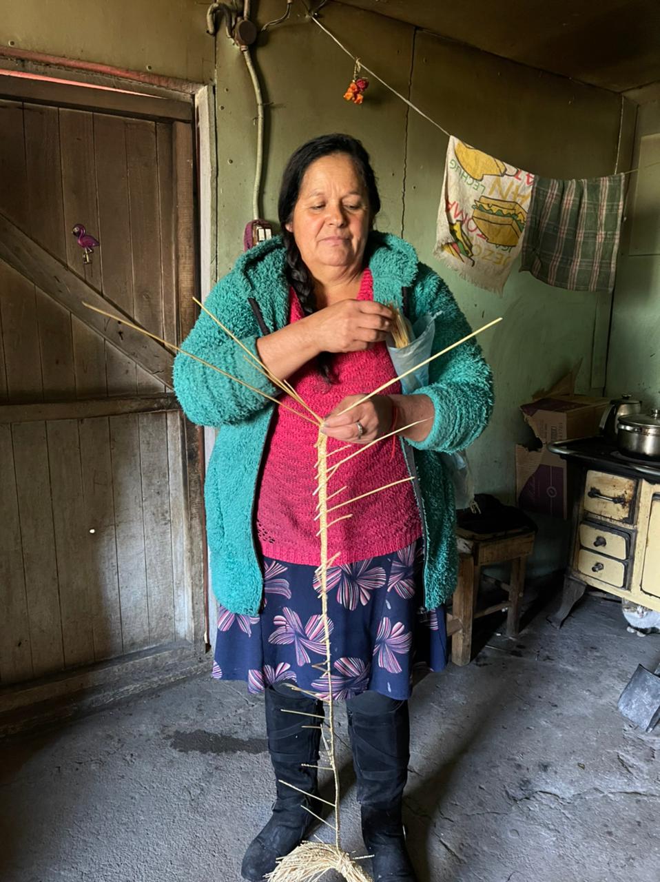 Su práctica de trenzado es de 7 pajas. Los recursos materiales utilizados son el trigo colorado (siembra).